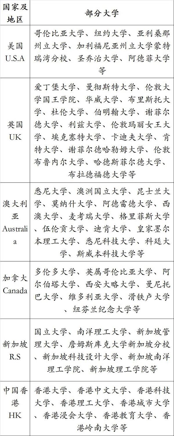 附件:部分可选大学