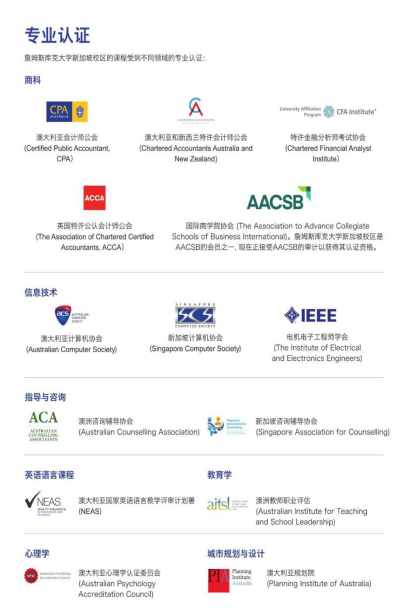 04节约时间新加坡校区在只缩短假期时间的前提下完成规定学位课程设置,从而节省留学时间及留学费用。本科课程为24个月;硕士课程为12/16个月。教学一致:新加坡校区的课程设置和教学水平均与澳大利亚校区保持同步,所颁发的学位证书与澳大利亚校区完全相同。