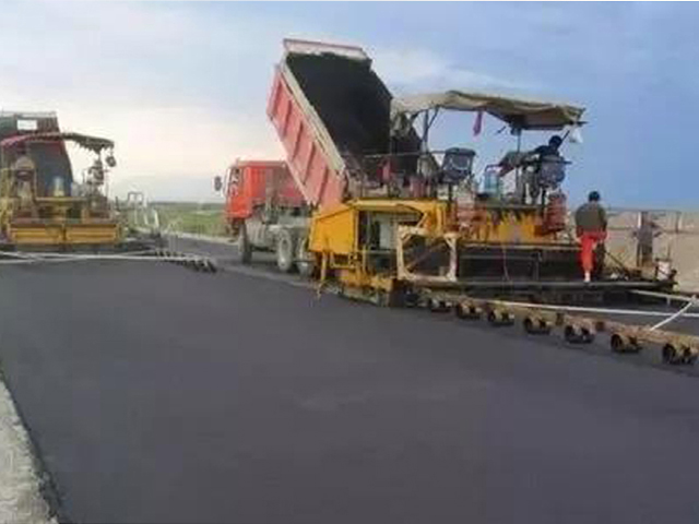 沥青道路面层施工工艺流程:生产→运输布料→摊铺→压实→接缝→开放交通