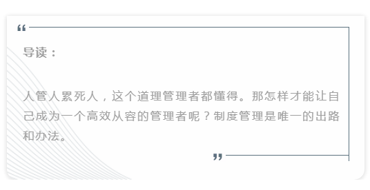 久而久之,上行下效,大家都不执行了,又回到了人管人累死人的局面。