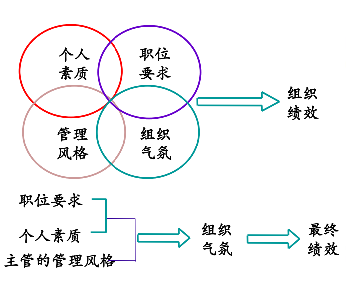 ● 个人特性是讲的个人的素质,需求、动机等等。● 工作是岗位的责任本身,工作的性质和复杂性。● 环境是包括上级的管理风格,组织的文化,同事的行事方式等,我们把通常称之为氛围。