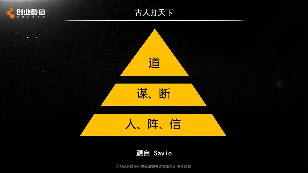 每家公司一定要有上面说的“道”,就是我们的使命、愿景和价值观。