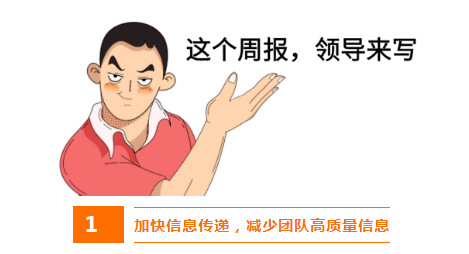 这个意思就是说,可以将通过自上而下的周报,将阶段目标,工作思路、见闻、重要信息通过周报及时同步给大家,这样可以让大家的目标更加清晰、不至于闷头就是干,一问啥,啥也不知道。同步信息的扩散,加快了信息反馈,对公司内信息的流通也有促进的作用。