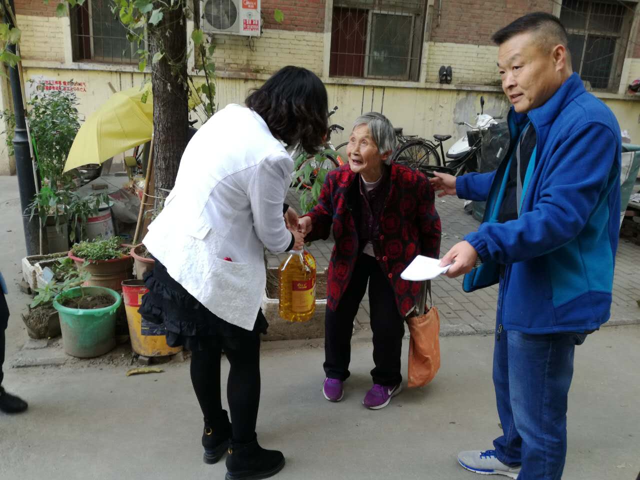 在社区领导王永全书记,社区帮扶负责人王丽红,史春明等工作人员的带领下,我们把爱心生活用品送到了困难老人家庭,并送上节日的祝福。
