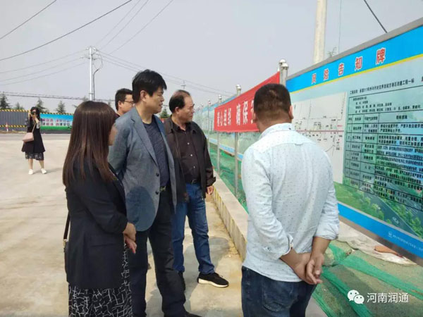 2018年9月27日上午,河南润通集团董事长刘海霞、综合部长李慧玲、总部顾问商友光、田国华对集团317项目工地视察调研。项目部主任张旭东、张永伟等陪同视察。