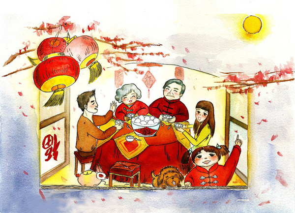 赏明月,花好月圆;观花灯,诗意盎然;舞龙狮,“钱”途灿烂;吃元宵,甜蜜永远;祝福来,真情不变。