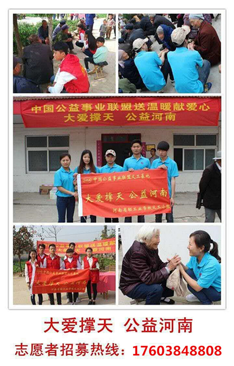 为提高公益力量,现面向全社会招募爱心志愿者,欢迎您加入到关爱脑瘫患者、关爱孤寡老人的行列中来,为社会孤寡老人送去一份温暖保障。